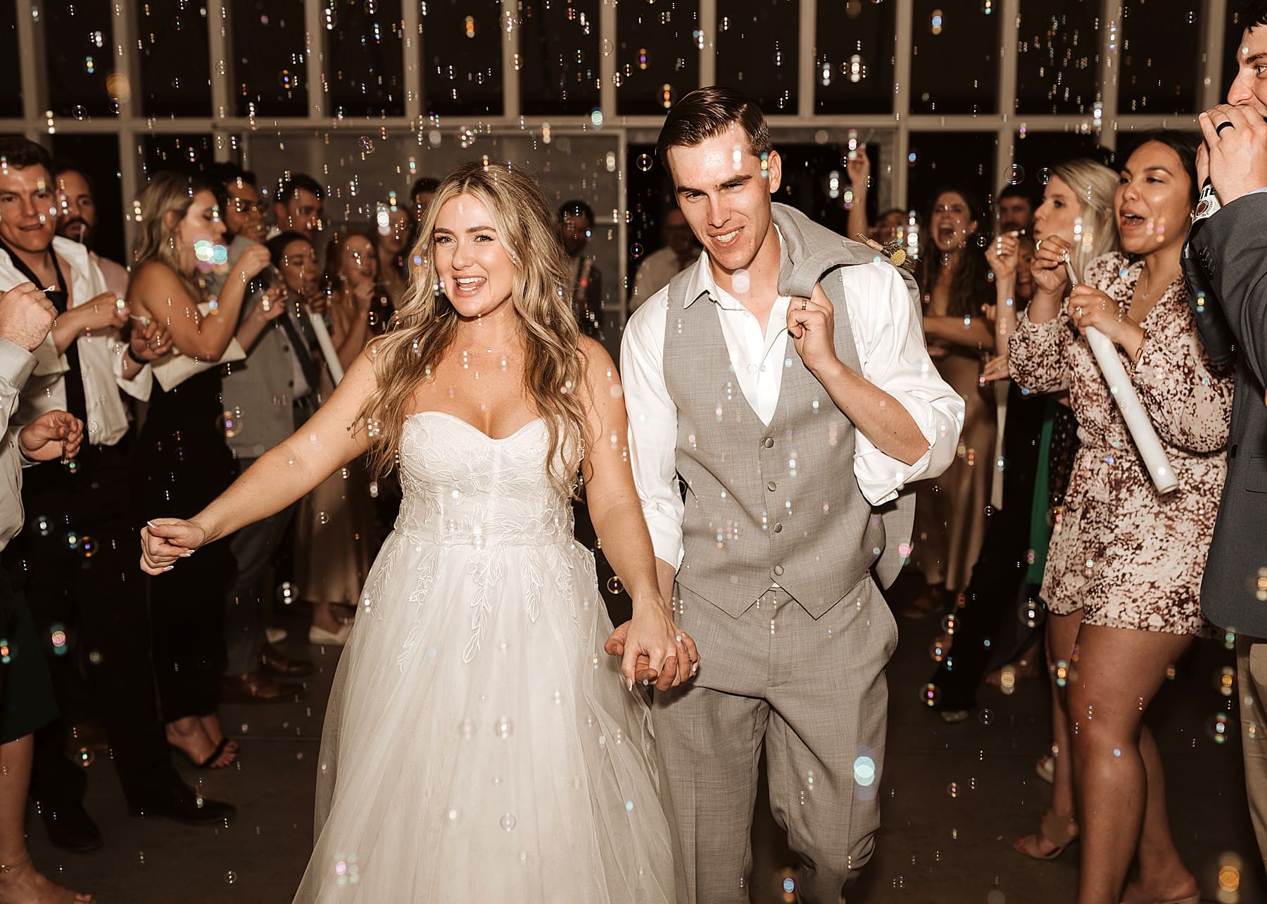 Sometimes things don’t go as planned in the wedding world and that’s why there’s almost always a backup plan – especially when weather is involved. Right before they were about to have their grand exit, a massive storm came out of nowhere. We quickly switched gears and had a bubble exit under the covered breezeway. In the end, these turned out to be some of my favorite exit photos!