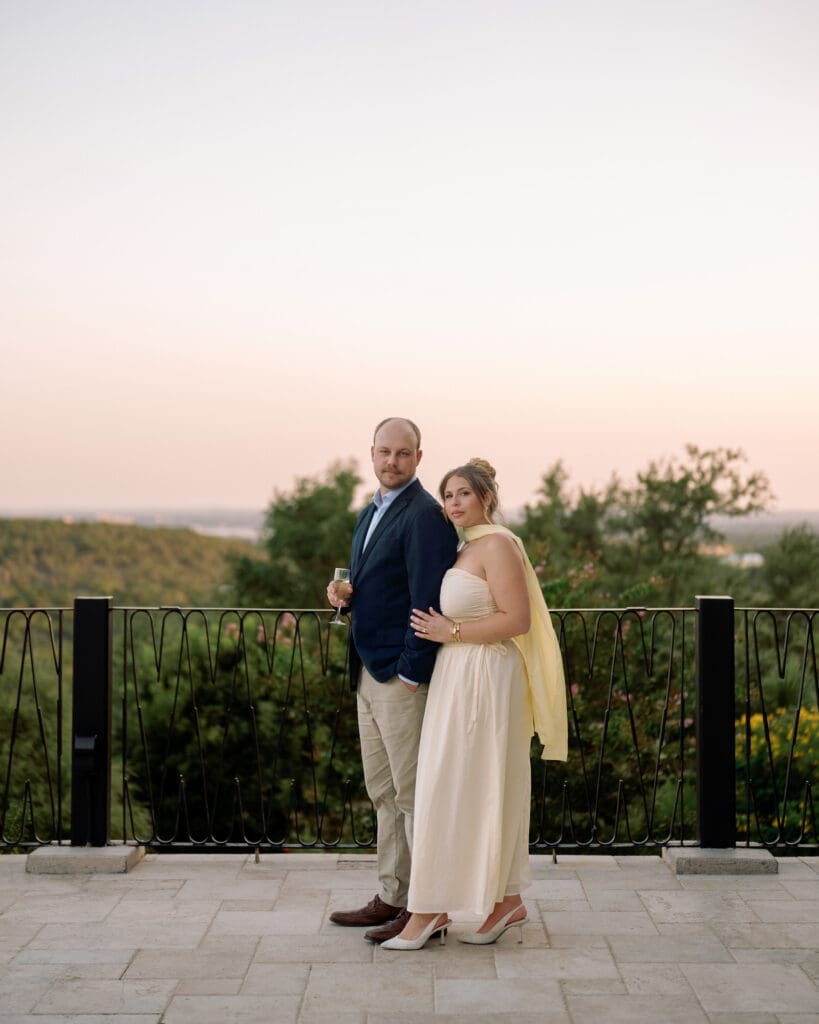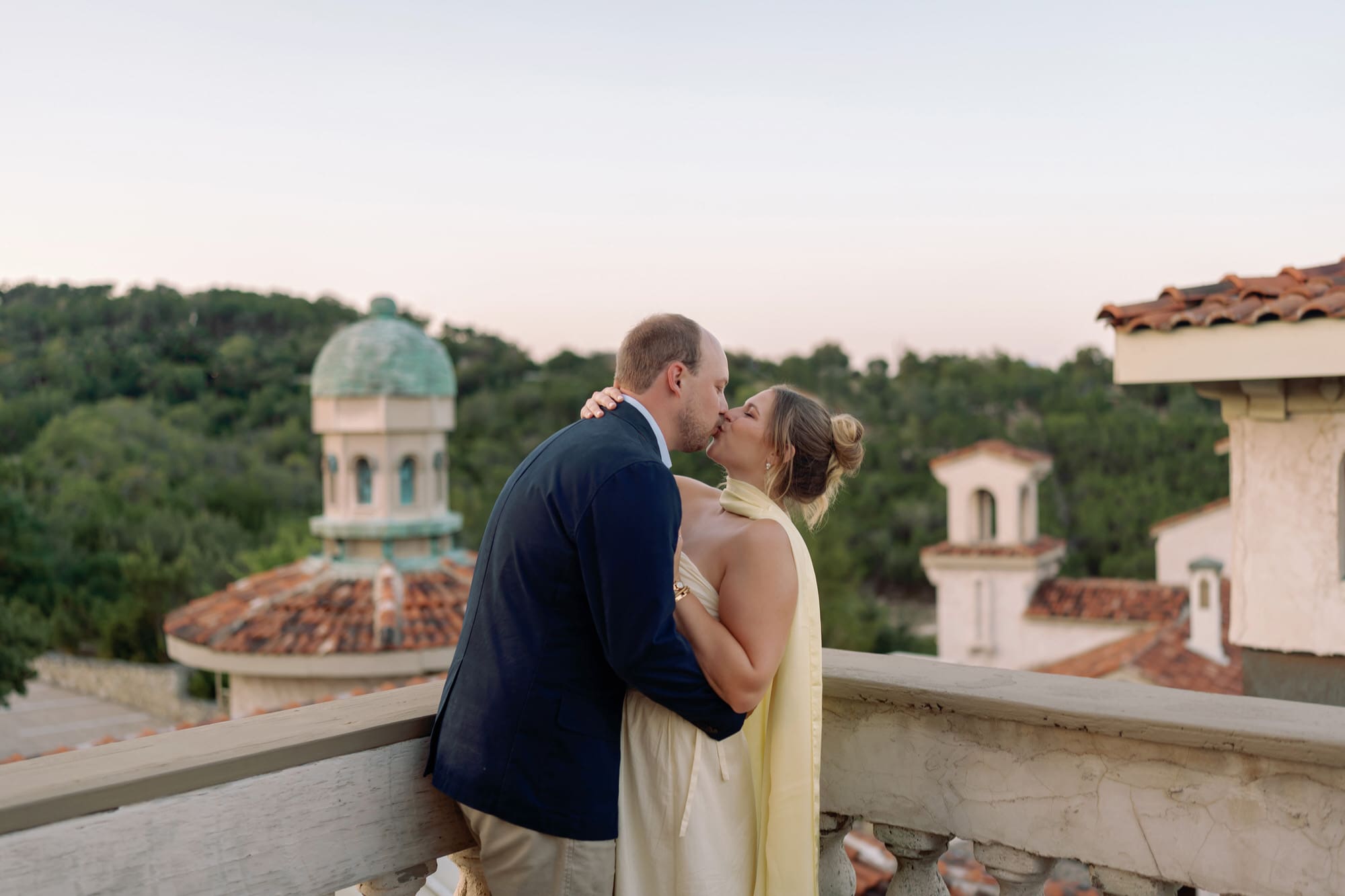 Set against the warm stone walls, café lights, and breathtaking Hill Country views, this romantic anniversary photoshoot felt like reliving the magic of their wedding day — with even more laughter, ease, and depth between them.